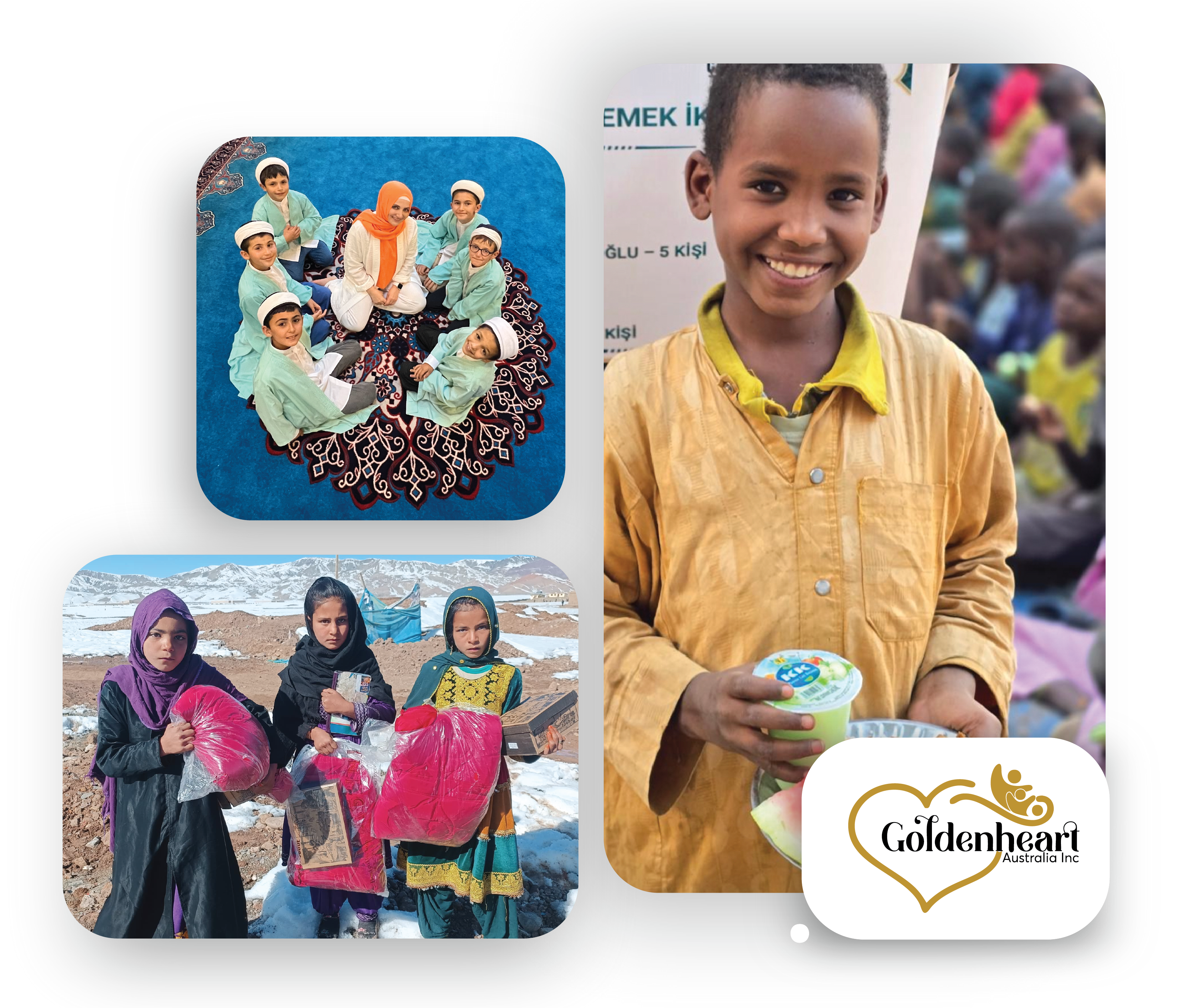 Golden Heart Australia is a non-profit organization dedicated to providing humanitarian aid, including Hafiz and Orphan scholarships, mosque construction, water well projects, food distribution, and charity programs such as Zakat, Sadaqah, and Qurbani donations.
